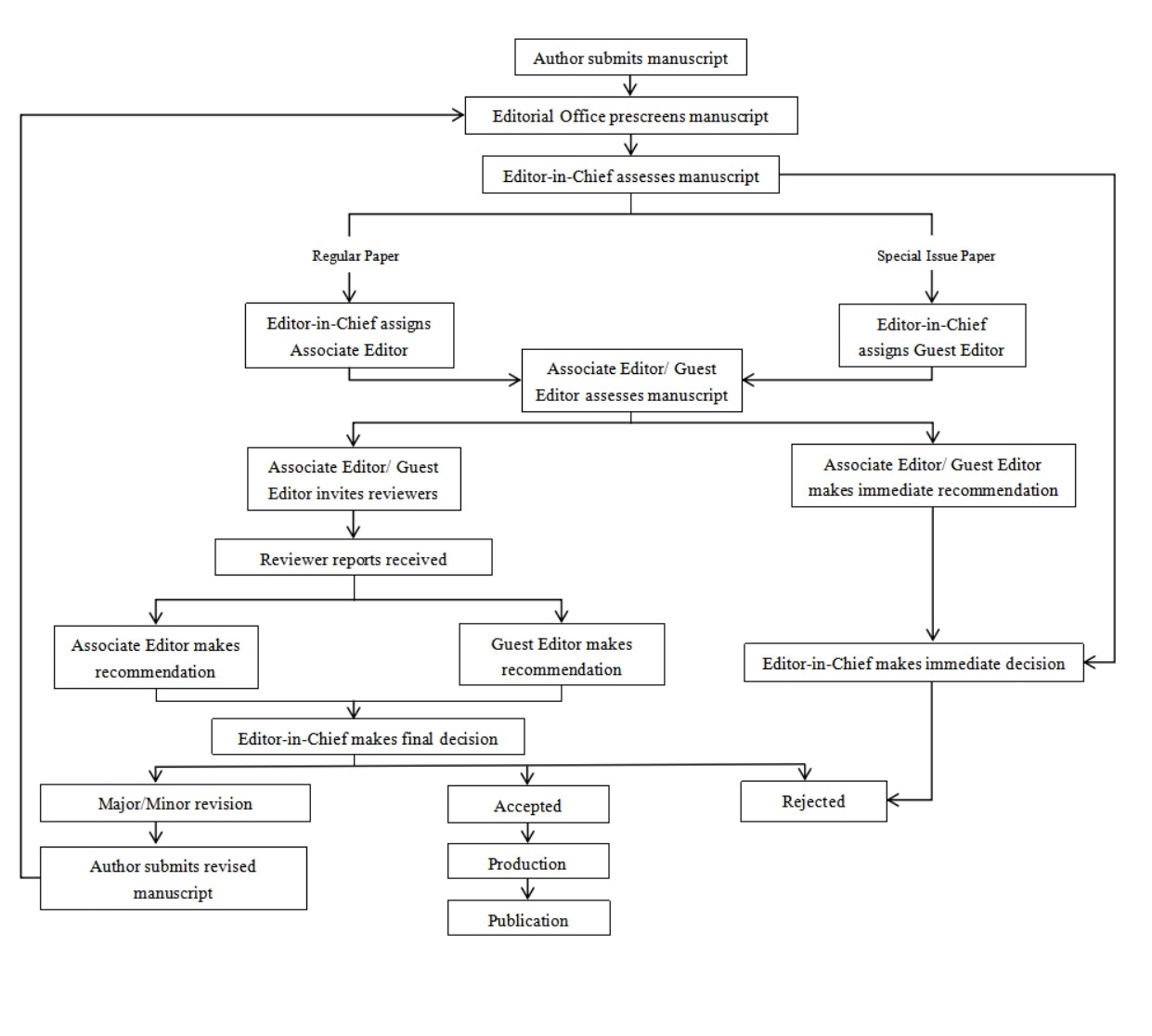 The editor’s final decision may be to accept, request minor or major revisions, or reject the manuscript outright. Accepted papers proceed to copyediting and publication, while rejected ones may be resubmitted after substantial revision and will undergo the full review process again.